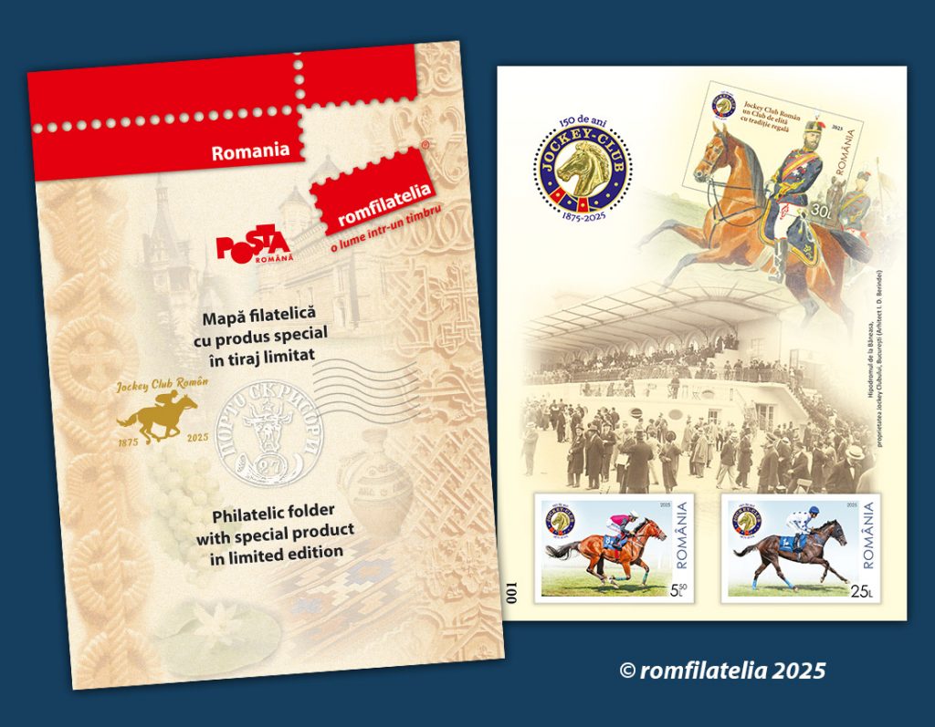 La data de 28 noiembrie 2025 Romfilatelia, în parteneriat cu Poșta Română, a introdus în circulație emisiunea filatelică aniversară „Jockey Club Român – 150 de ani”, un moment de referință în an aniversar pentru noi, marcând simbolic un secol și jumătate de tradiție, eleganță și continuitate instituțională.